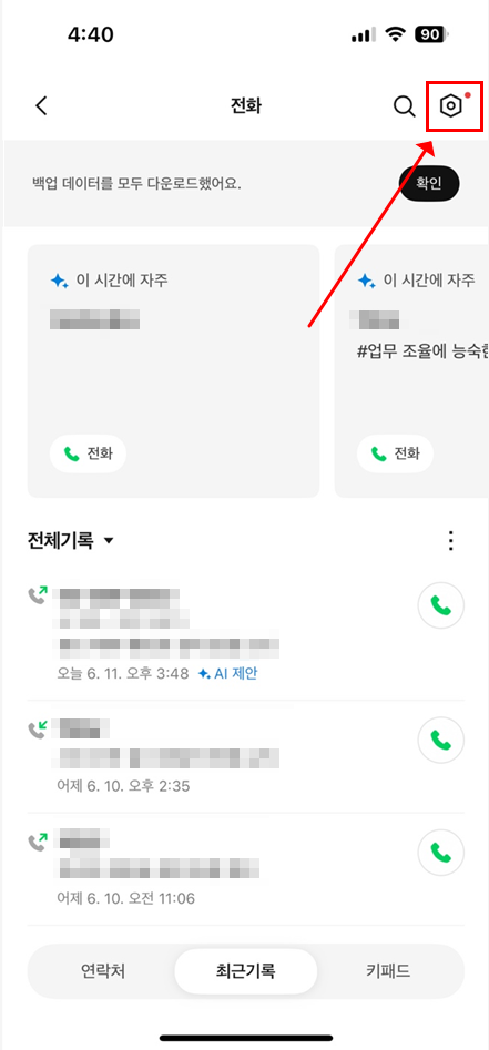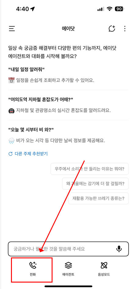 - 앱에서 [AI전화] 또는 [전화] 메뉴 진입